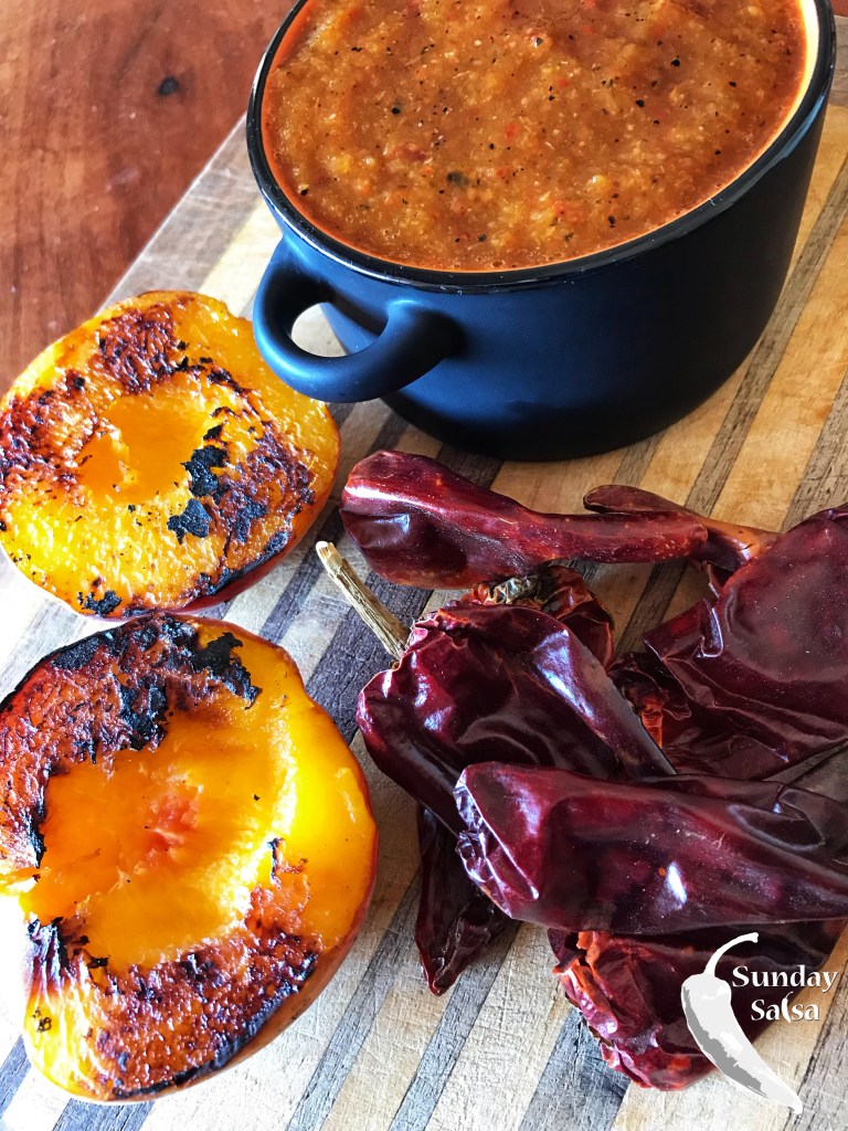 My Tío Tony (one of the best salsa cooks I know) recently recommended that I try to use roasted peaches in a salsa. Well, it just so happened that one of the more popular items at the Heirloom Farmers Market at Rillito Park were peaches. So this week’s Sunday Salsa is a new creation for me, Salsa Durazno Asado.
