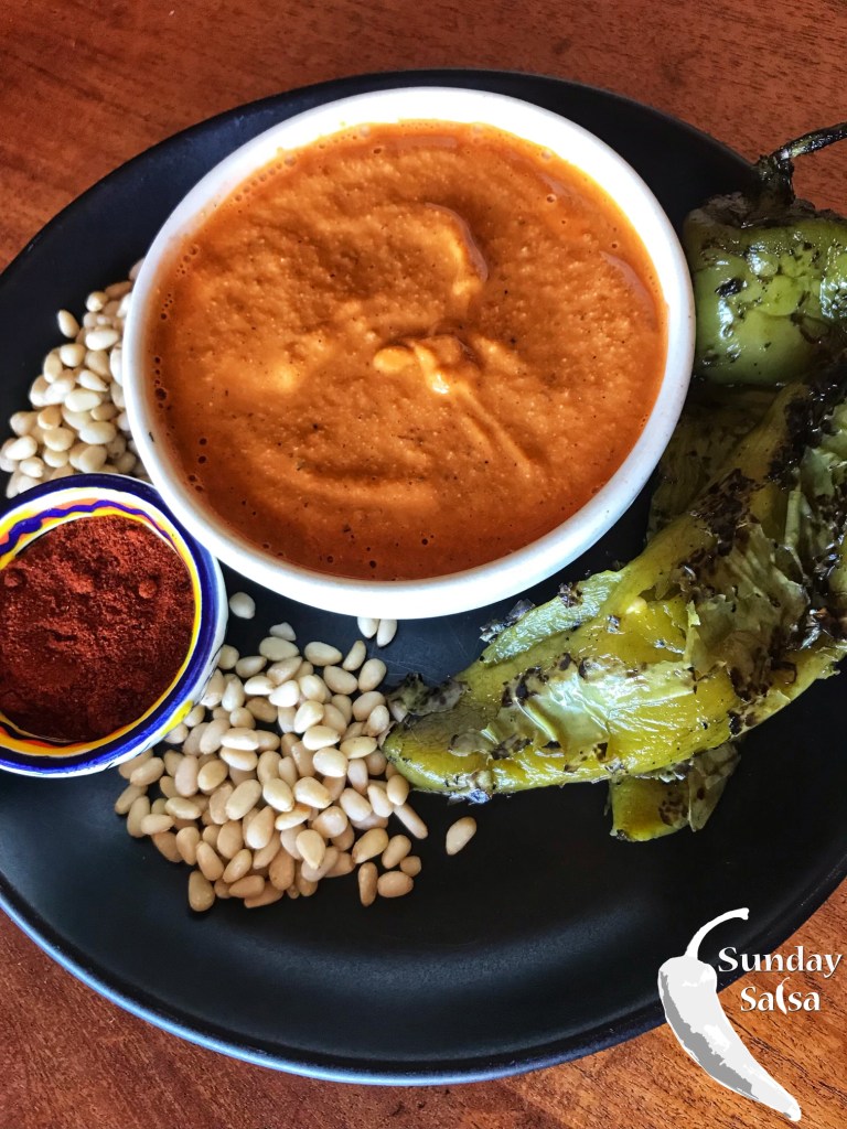 With fall just around the corner and chile roasting season now in full swing, I decided to create a New Mexican Salsa Macha incorporating Hatch Green Chiles, piñon nuts, and Chimayó Chile Powder as a tribute to the Land of Enchantment.