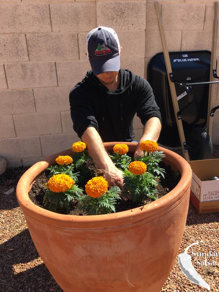 Marigold flowers are a major part of Día de los Muertos. These bright-fluffy flowers are placed on ofrendas and at gravesites, as a way to lead the spirits of the deceased back to their earthly home for the night. Along with marigolds, other items such as the deceased’s favorite foods, drinks, and photos are placed along side for them to enjoy during their night home. I began growing marigolds in my garden in March and I am now using them on my ofrenda at home. Marigolds are also great to have in your garden as a plant that will keep bugs away, a method that my grandmother taught me and many of my relatives.