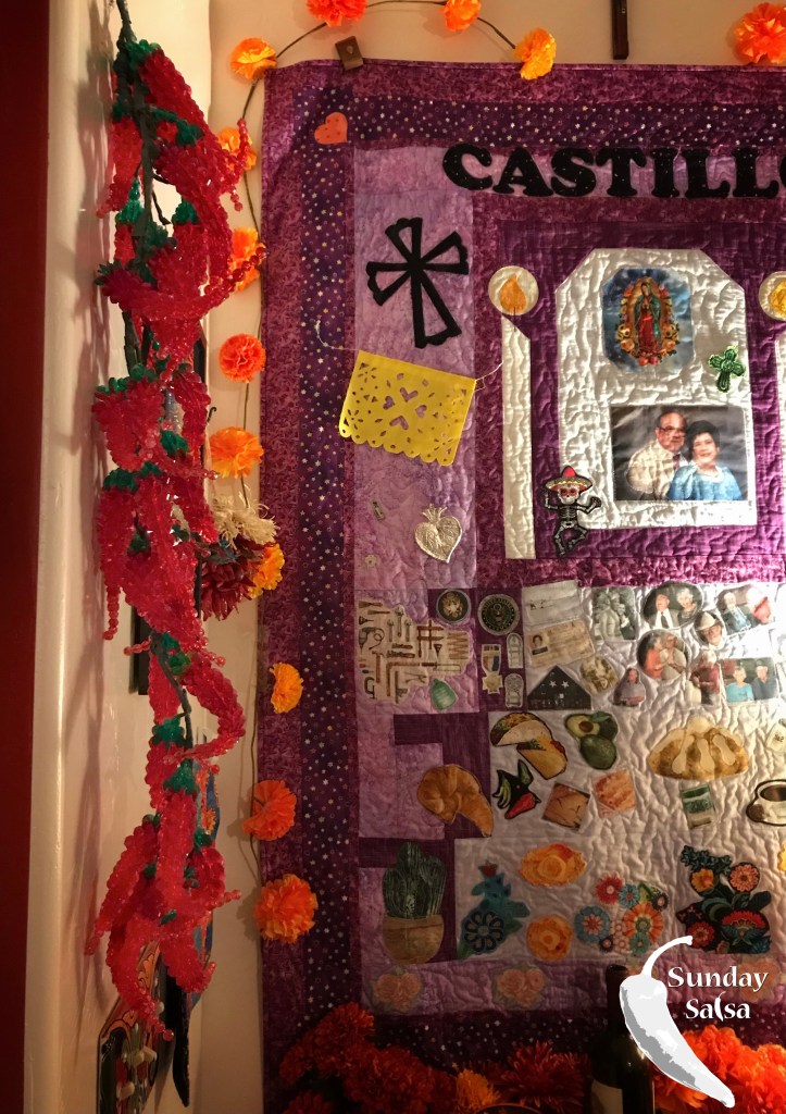 This year I decided to place it next to the Ofrenda Quilt that my mom made to honor my grandparents. Every time I look at the chile ristra hanging next to the ofrenda it reminds me of how special and talented my grandparents were. I’m also certain that their love for food and chiles was a trait I inherited.
