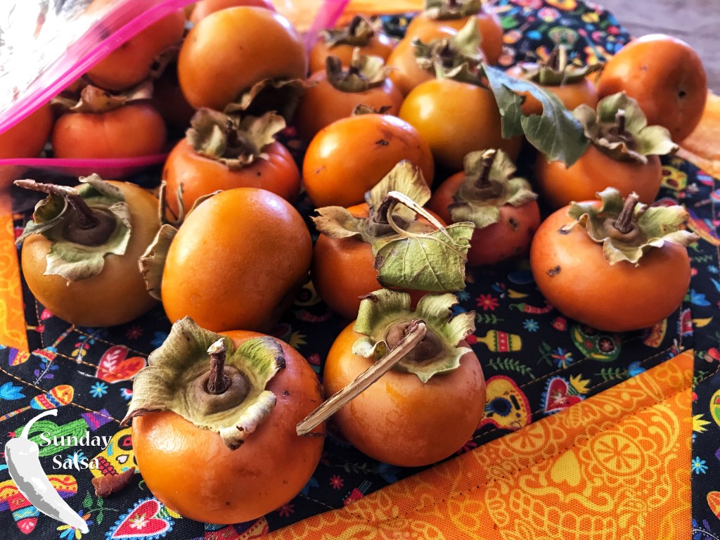 Salsa para Día de los Muertos contains persimmons (pictured), habañeros, Zima Grape Tomatoes, as well as a Cara Cara Orange and a Valencia Orange. These ingredients not only combine to make a delicious sweet and spicy taste, but create a beautiful orange color reminiscent of a marigold flower.