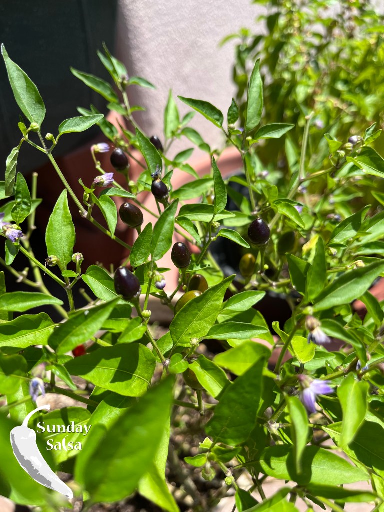The honey balances out Salsa Cariño from the excessive heat that is provided from the chiltepíns. I used chiltepíns from my friends at Churros Inzunza at the Rillito Farmers Market, as my chiltepín plant’s fruit are not ripe yet (pictured). If chiltepíns are too hot for you, I recommend using three chile de árbols instead for this salsa.