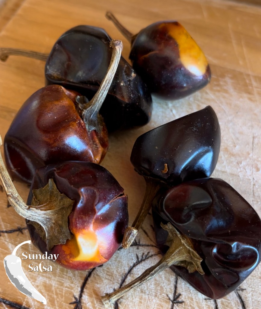 I decided to use the chapulines with a salsa that was mainly comprised of chile cascabels. This was the first time I had used cascabels in a salsa, but I have always been intrigued by their unique shape. Cascabels are in the shape of ball (hence why they are also called chile bola), but they better known for their rattle or bell sound as they typically contain loose seeds inside that create a similar noise. The chiles are not that hot and have a smokey flavor to them.