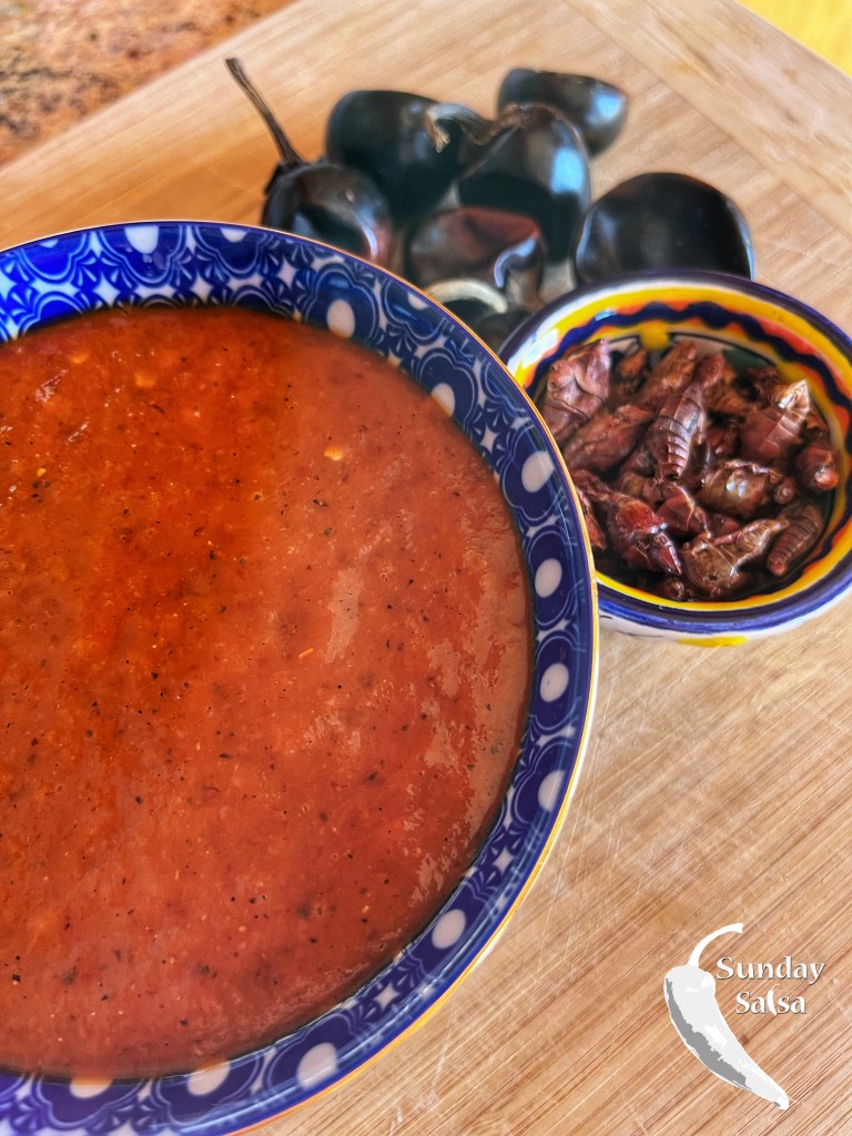Grasshoppers in a salsa? Yes, Salsa Chapulines contains grasshoppers, but before you say no to this dish, these insects are actually a very tasty addition to this delicious roasted salsa.