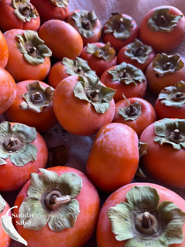 The picking season for persimmons occurs in the fall when their fruit turns to a vibrant orange color. My parents have a two Fuyu Persimmon Trees at their house in Sedona and have had a plethora of fruit this autumn. With so many fruits available I had to find a way to use them in a salsa.