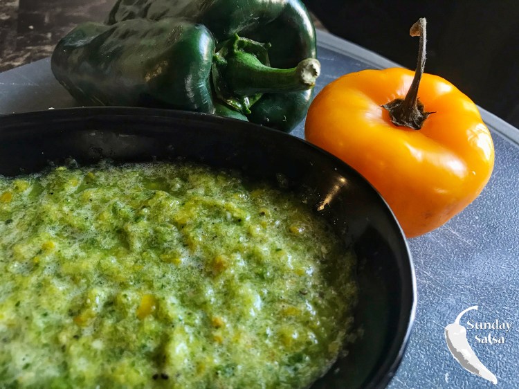 This salsa features a variety of roasted ingredients with poblanos, anaheims, bell peppers, onion, garlic, and tomatillos blended with Mexican Crema. These flavors combine to make a tasty salsa that goes great with any food.
