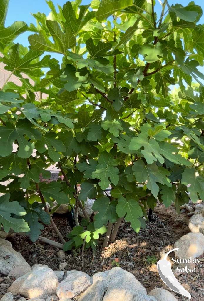 I was excited to see these figs, as I have been growing a Sosa Carillo Black Mission Fig Tree (pictured) in my backyard. These figs originate from the Sosa Carillo House in Downtown Tucson’s Barrio Viejo. I planted my tree three years ago after finding it at Mission Gardens in Tucson. Mission Gardens is an incredible place that grows native plants and trees, including four different types of figs. Check out this detailed article from Tucson’s Community Supported Agriculture for more information on the Mission Garden Figs.