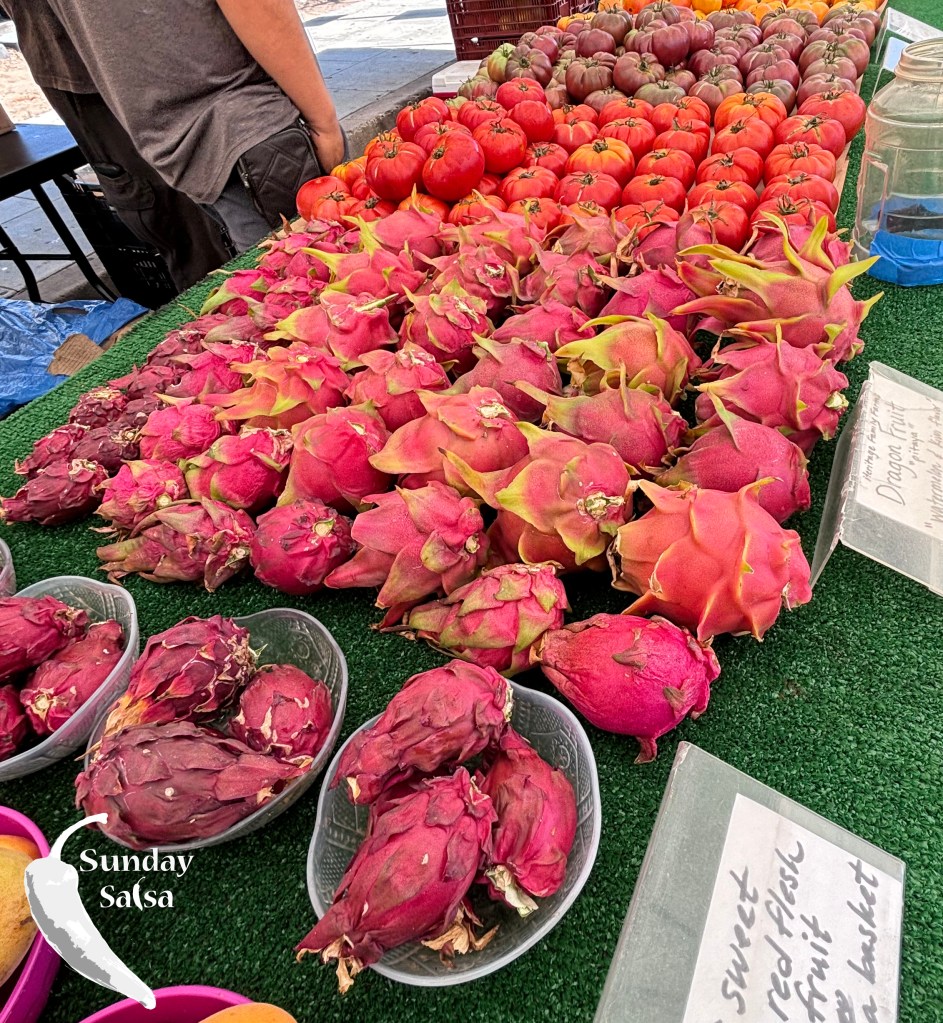 At the Pacific Beach Farmers Market I came across the reed avocados as well as dragon fruit from a farm out of Escondido. The reed avocados are known for their buttery and creamy texture, which I knew would be perfect for the base of Salsa Tranquilo. I have also never used dragon fruit in a salsa before, but after talking with the guys from Escondido they encouraged me to try it with the salsa. They were right as it increased the sweetness of the dish and paired great with the avocado and mango.